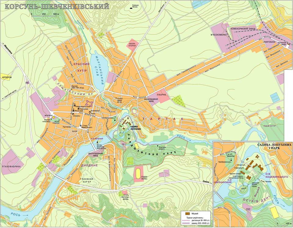 План м. Корсунь-ШевченківськийРозмір зображення: 960:748 піксел Карта накреслена Дмитром Вортманом, опублікована 14.02.2014 р. Умовні знаки |