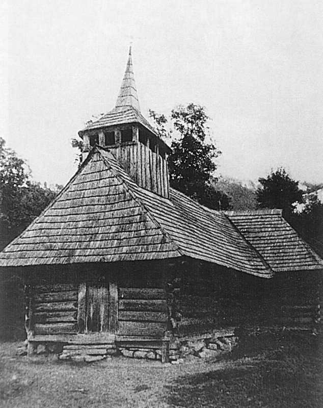 Косівська Поляна. Дерев’яна церква св. Петра і Павла, 1770 (?) р. та дзвіниця. Розібрана 1938 р. (В. Vavroušek. Církevní památky na Podkarpatske Rusí. Praha. 1929.)