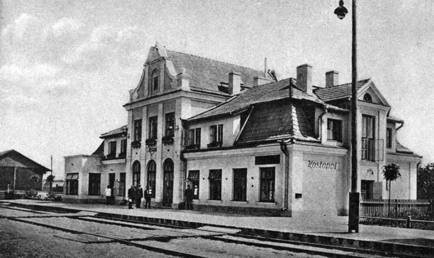 Залізничний вокзалРозмір зображення: 874:519 піксел Польська поштівка 1930-х (?) рр. з альбому «Дубенський форт-застава» |