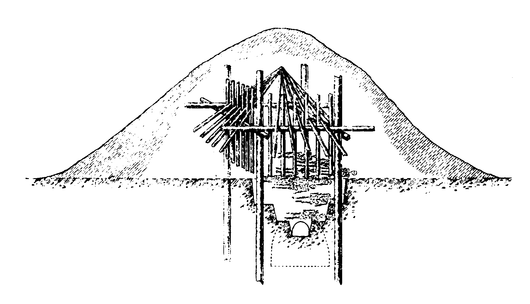 Реконструкция погребального сооружения в насыпи кургана у станицы Костромской бывшей Кубанской области. Раскопки Н.И. Веселовского 1897 года.