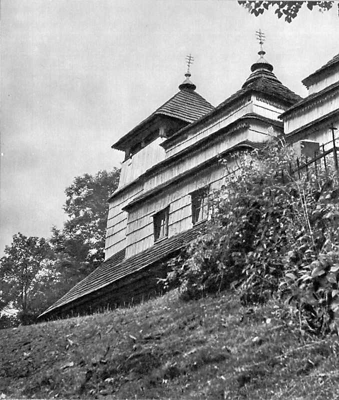 [1970 р.] Вигляд з позиції А2Розмір зображення: 678:800 піксел Джерело: Гоберман Д. Н. Памятники деревянного зодчества Закарпатья. – Ленинград: Аврора, 1970 г. |
