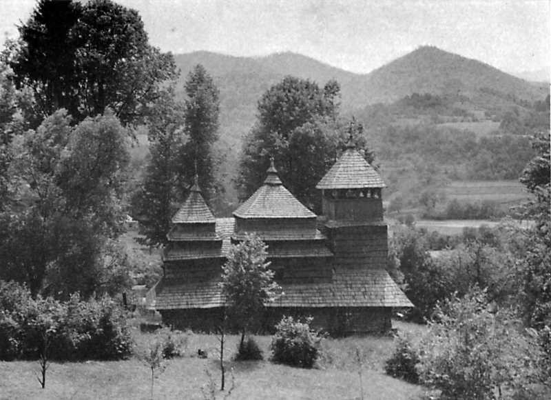 З Ужгорода тепер наш шлях лежить знов у гори. Гірський краєвид тут, може, чи не найсуворіший у Карпатах. Першим пунктом далеко в горах є село Кострино, де нас цікавить Покровська церква (1761 р.) – перехідний тип між лемківськими і бойківськими храмами. Бойківські церкви відрізняються від усіх інших тим, що їх три бані завжди мають 3 – 5 заломів. Як правило, в західній бані над бабинцем влаштовується дзвіниця, як і в лемківських храмах; але бойківські церкви відзначаються суворою рівновагою бань. У них західний верх завжди однакової висоти з вівтарним.