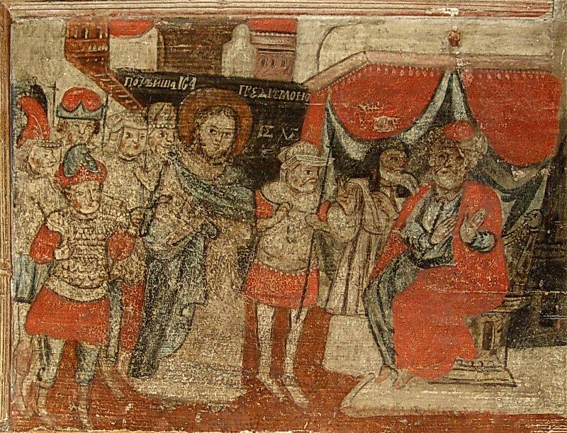 Христос перед ІродомРозмір зображення: 800:611 піксел Христос перед Іродом. Клеймо ікони «Страсті Христові» 1737 р. З церкви св.Кузьми і Дем'яна у Котані. Нині в музеї-замку Ланцуті. |