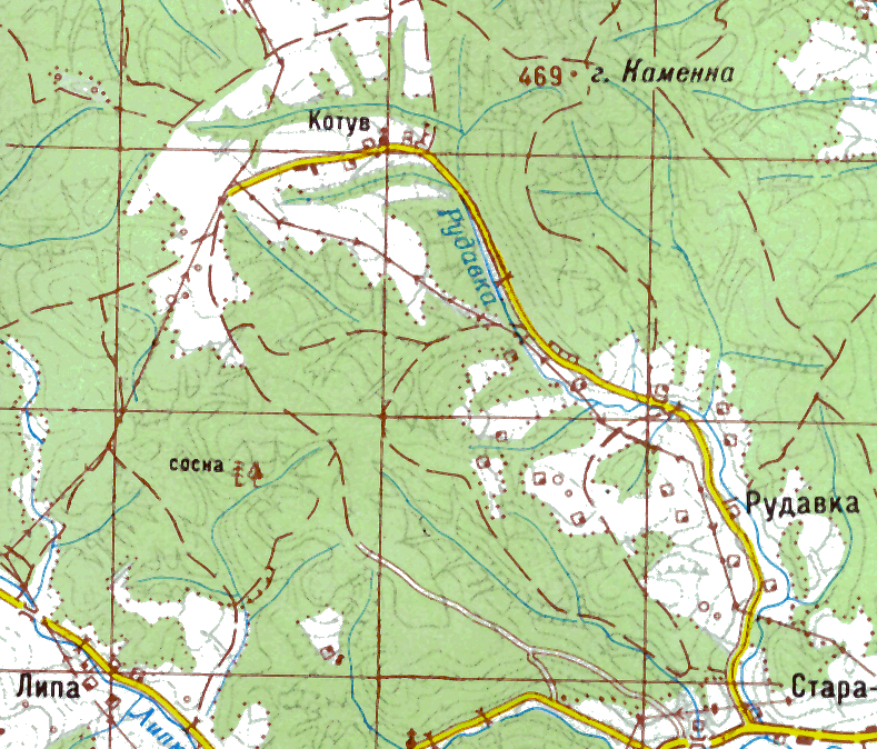 Карта (Котув)Розмір зображення: 789:674 піксел Карта Київської військово-картографічної фабрики, масштаб 1:100000, аркуш 88, друк 2000 р. (за матеріалами 2000 р.). |