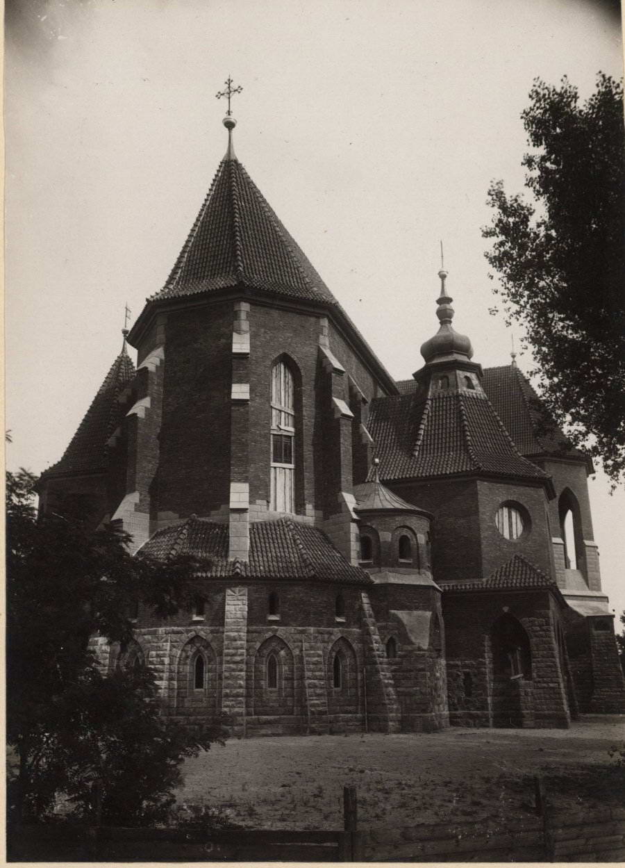 Цей грандіозний костел, побудований у 1922-38 роках архітекторами Стефаном Шиллером і Вєславом Кононовичем, одночасно міг вмістити 8 тисяч парафіян. Довжина храму становила понад 60 м, ширина 43 м разом з каплицею та основою вежі. Головна вежа сягала 72 м в висоту.