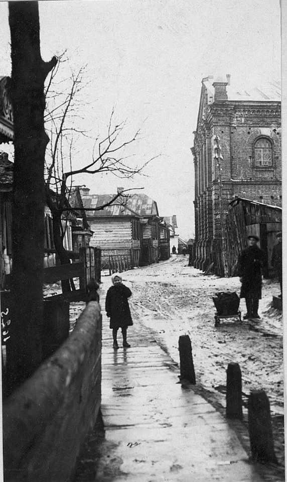 СинагогаРозмір зображення: 572:960 піксел Велика синагога (з правої сторони), фото 1916 р. з зібрань Австрійської національної бібліотеки. Фото опублікувала Тетяна Яцечко-Блаженко 27.01.2020 р. |