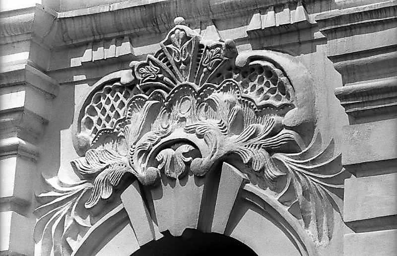 Скульптурний картуш над вікном 1-го ярусуРозмір зображення: 800:517 піксел 1983 р. 28 травня. Фото М.І.Жарких. Негатека, № 208-06. |