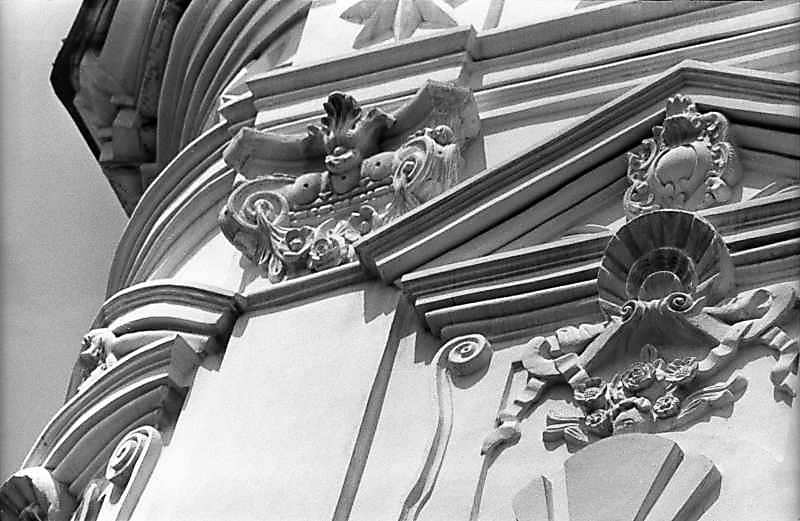 Капітель пілястри і фрагмент сандрикаРозмір зображення: 800:521 піксел 1983 р. 28 травня. Фото М.І.Жарких. Негатека, № 208-07. |