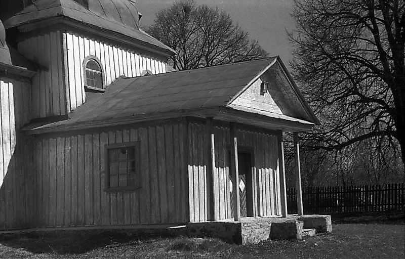 1988 р. Південний притвор. Вигляд з південного заходуРозмір зображення: 800:512 піксел 1988 р. 30 квітня. Фото М.І.Жарких. Негатека, № 371-15. |