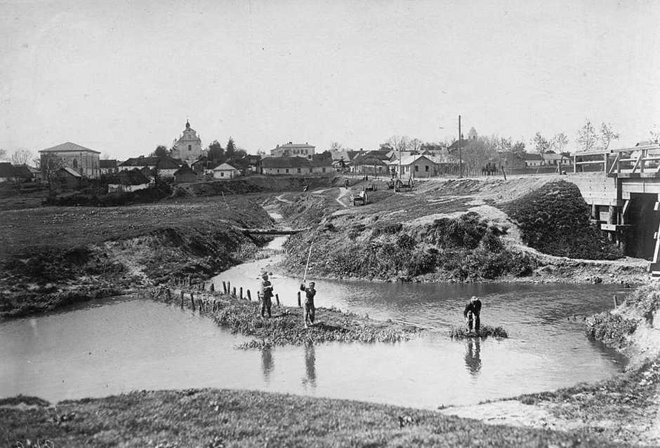 Поч. 20 ст. (?) Панорама із синагогою, костелом і церквою