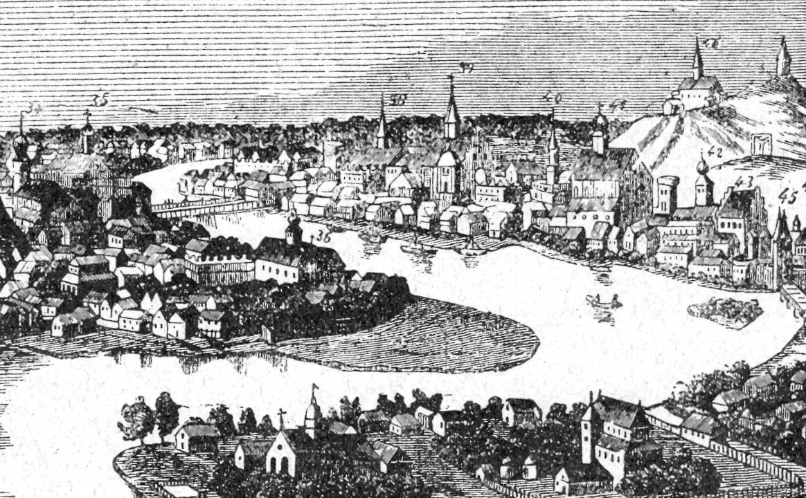 34 – костел бернардинів; 35 – костел і кляштор св.Ядвіги; 36 – костел св.Агнеси; [37] – пороховня; 38 – костел св.Лаврентія; 39 – костел божого тіла; 40 – ратуша на Казимирі; 41 – костел св.Катерини; 42 – костел св.Леонарда; 43 – костел паулінів; [44] – костел св.Якова; 45 – Скавинська брама; 46 – костел св.Бенедикта