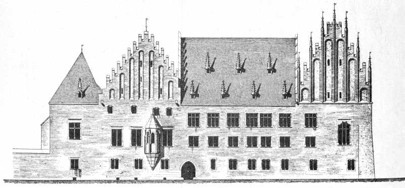 Головний фасадРозмір зображення: 800:371 піксел Джерело: Sokołowski A. Dzieje Polski ilustrowane. – Warszawa, 1900, t. 2, s. 110. |