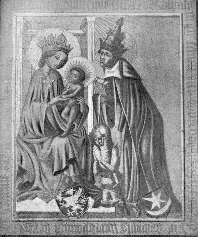 Образ мальований на дереві. Зліва – богородиця з дитиною Ісусом на руках. Справа – папа Григорій з тіарою на голові, який доручає пресвятій діві рицаря, що стоїть на колінах (Вержбенту з Браниць). Образ виконаний у Кракові митцем старонімецької школи.