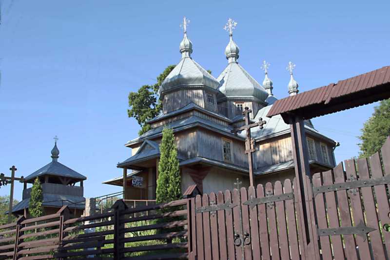 2016 р. Дзвіниця і церква. Вигляд з позиції А3Розмір зображення: 800:533 піксел Фото Зенона Боровця і Богдана Тхора, 22 липня 2016 р. |
