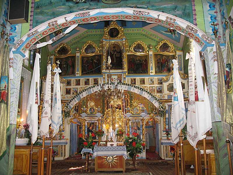 Інтер’єр з видом на іконостасРозмір зображення: 800:600 піксел Фото Зенона Боровця і Богдана Тхора, 7 вересня 2006 р. |