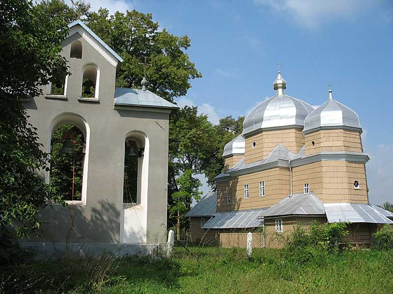 2006 р. Дзвіниця та церква. Вигляд з південного сходуРозмір зображення: 800:600 піксел Фото Зенона Боровця і Богдана Тхора, 7 вересня 2006 р. |
