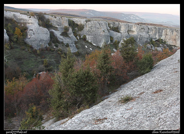 Вид с плато Топшанлар на балку Черкес-КерменРозмір зображення: 784:570 піксел Фото: Ярослав Кузнецов, 8 листопада 2008 р.