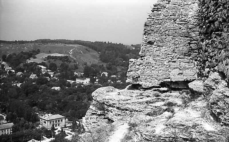 1977 р. Фрагмент зовнішнього панциря на тлі панорами містаРозмір зображення: 800:499 піксел 1977 р. 21 липня. Фото М.І.Жарких. Негатека, № A332-07. |