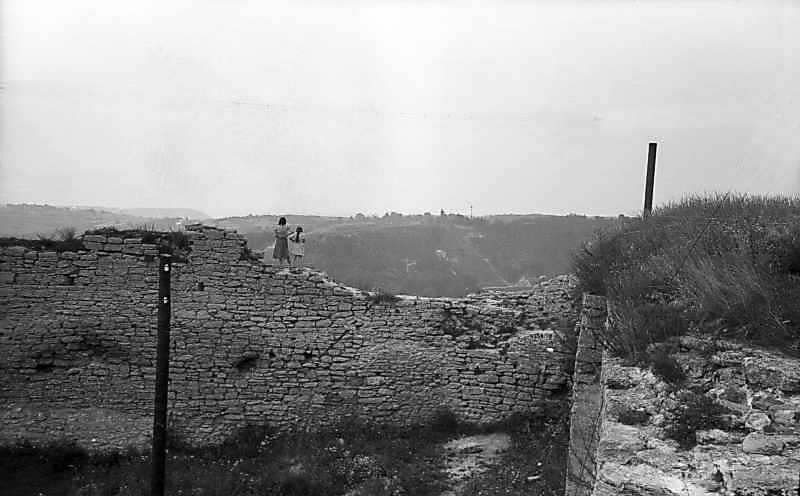 1977 р. Західна стіна у місці примикання до Західної баштиРозмір зображення: 800:496 піксел Вигляд зі сходу. 1977 р. 21 липня. Фото М.І.Жарких. Негатека, № A332-12. |