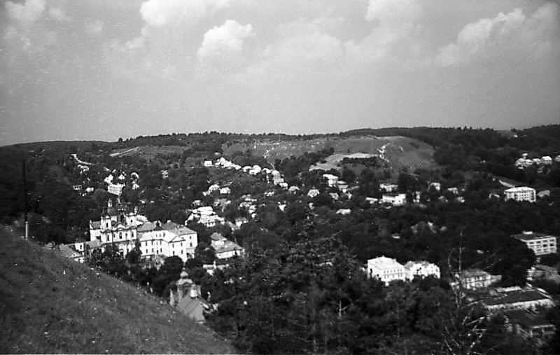 1977 р. Вид на центр міста з вершини Замкової гориРозмір зображення: 800:507 піксел 1977 р. 21 липня. Фото М.І.Жарких. Негатека, № A330-26. |