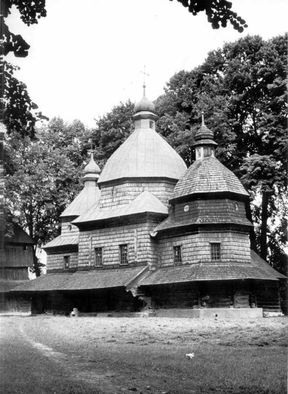 [1987 р.] Загальний вигляд з південного сходуРозмір зображення: 585:800 піксел Джерело: Titus D. Hewryk Masterpieces in wood: houses of worship in Ukraine. – New York, 1987, № 48. |