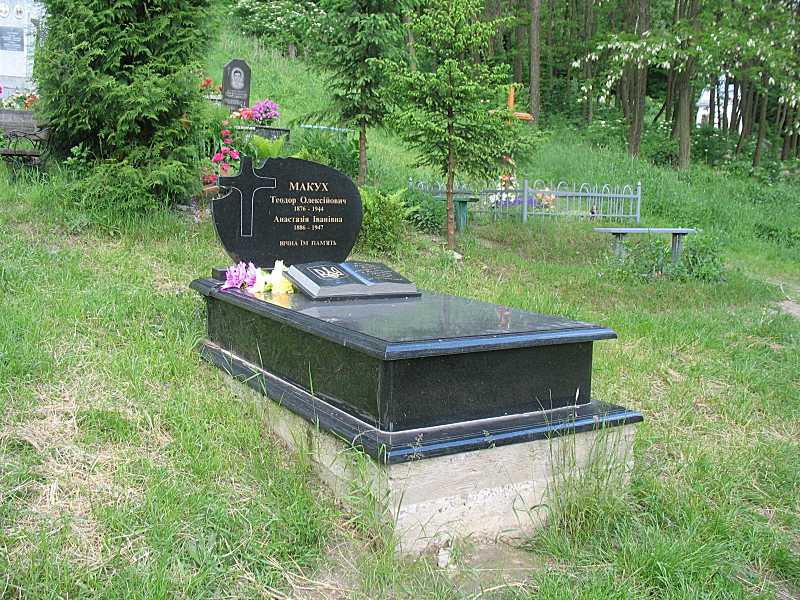 Напис: «Макух Теодор Олексійович (1876 – 1944); Макух Анастазія Іванівна (1886 – 1947). Вічна їм пам’ять».