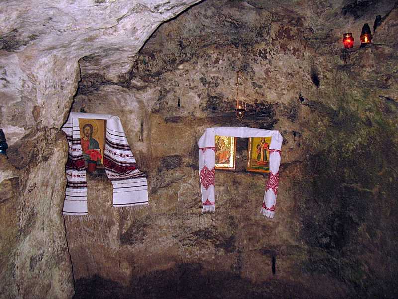 2015 р. Інтер’єр з іконамиРозмір зображення: 800:600 піксел Ікони Христа учителя, богородиці замилування, св. Василя Великого (?). Фото Зенона Боровця і Богдана Тхора, 30 травня 2015 р. |