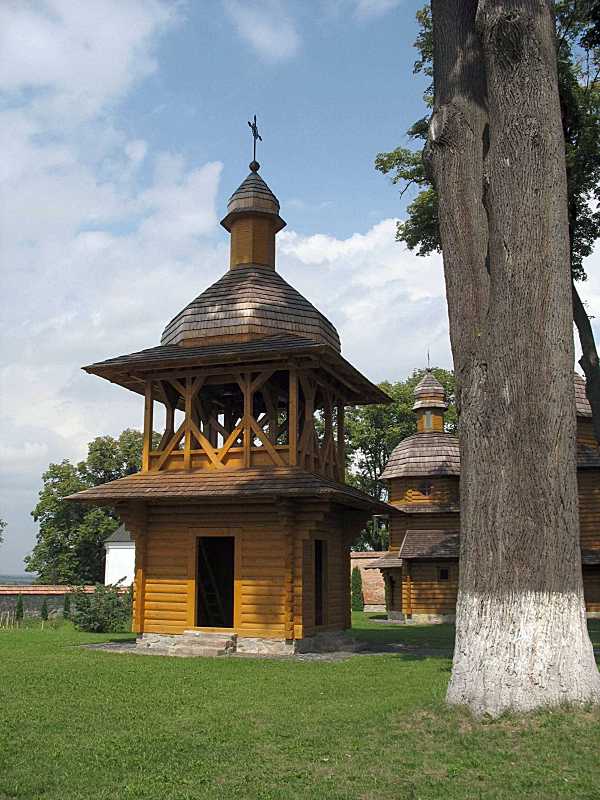 Дзвіниця церкви ПокровиРозмір зображення: 600:800 піксел Вигляд з півдня. Фото Зенона Боровця і Богдана Тхора, 20 серпня 2006 р. |