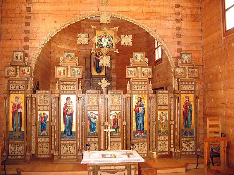 Інтер’єр з видом на іконостасРозмір зображення: 800:600 піксел Фото Зенона Боровця і Богдана Тхора, 20 серпня 2006 р. |