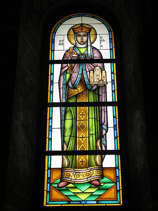 Вітраж «Св. княгиня Ольга»Розмір зображення: 600:800 піксел Фото Зенона Боровця і Богдана Тхора, 8 липня 2007 р. |