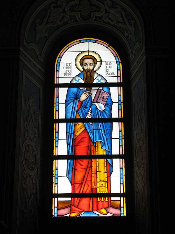 Вітраж «Св. Григорій Богослов»Розмір зображення: 600:800 піксел Фото Зенона Боровця і Богдана Тхора, 8 липня 2007 р. |