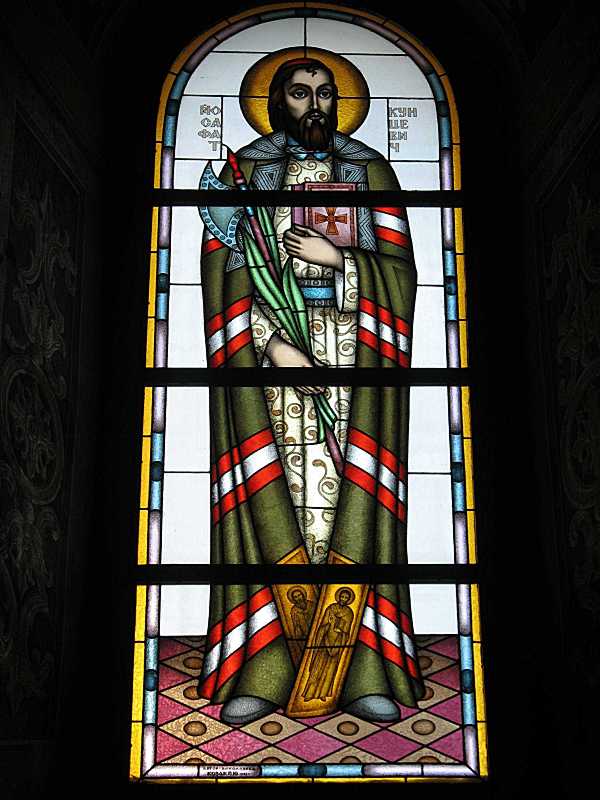 Вітраж «Йосафат Кунцевич» Розмір зображення: 600:800 піксел Фото Зенона Боровця і Богдана Тхора, 8 липня 2007 р. Вкладені елементи Півпостать Йосафата Кунцевича