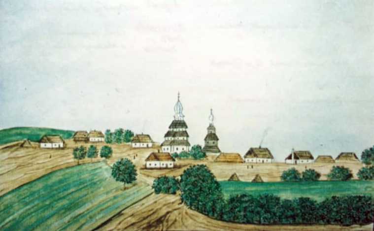 1854 р. Панорама села Крюківщина Розмір зображення: 759:469 піксел Рисунок Д. П. де ла Фліза 1854 р. Вище | Наступна сторінка