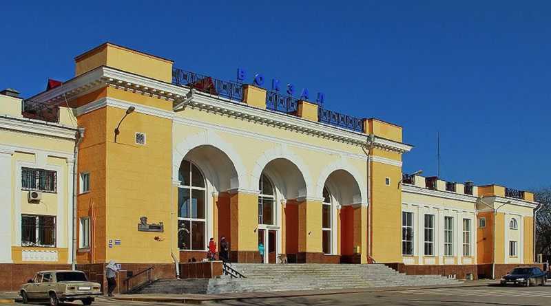 Залізничний вокзал Розмір зображення: 800:445 піксел Фото 9 березня 2014 р. з сайту Вкладені елементи 1969 р. Загальний вигляд 1969 р. Автобуси перед залізничним вокзалом