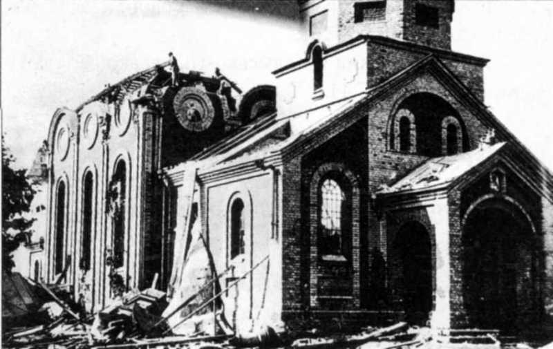 Руйнування церкви Преображення Господнього. Фото 1938 р. ЦДІА, ф. 408, on. 1, спр. 1328, арк. 3. Джерело: Слободян В. Церкви Холмської єпархії. – Львів: Наукове товариство ім. Шевченка, 2005 р., с. 249.