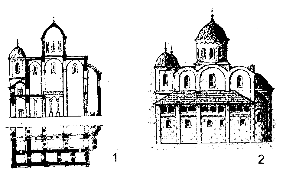 Варіант реконструкції (за В.Яремою), план, переріз, південний фасад Розмір зображення: 946:583 піксел Попередня сторінка | Вище | Наступна сторінка