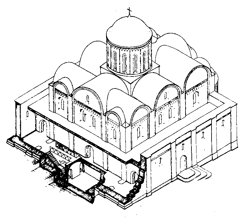 Варіант реконструкції (за І.Могитичем та Е.Демцюхом), аксонометрія Розмір зображення: 787:714 піксел Попередня сторінка | Вище | Наступна сторінка