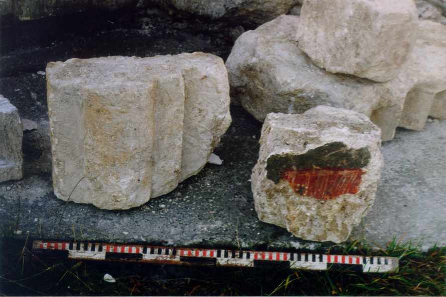 Архітектурні деталі, виявлені 2000 р. Розмір зображення: 889:593 піксел Вкладені елементи Фрагмент півколонки Фрагмент з розписом