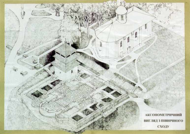Пропозиції щодо консервації. Рис.О.РибчинськогоРозмір зображення: 772:546 піксел Пропозиції щодо консервації та музеєфікації фундаментів Успенського собору та каплиці св.Василія. Аксонометричний вигляд з північного сходу. Рис.О.Рибчинського |