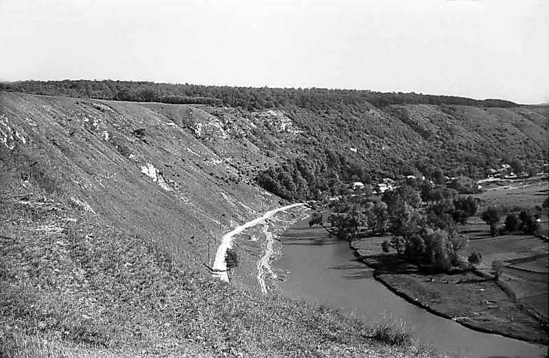 1978 р. Вид на долину Збруча від замку, з півдняРозмір зображення: 800:522 піксел 1978 р. 5 червня. Фото М.І.Жарких. Негатека, № 064-22. |