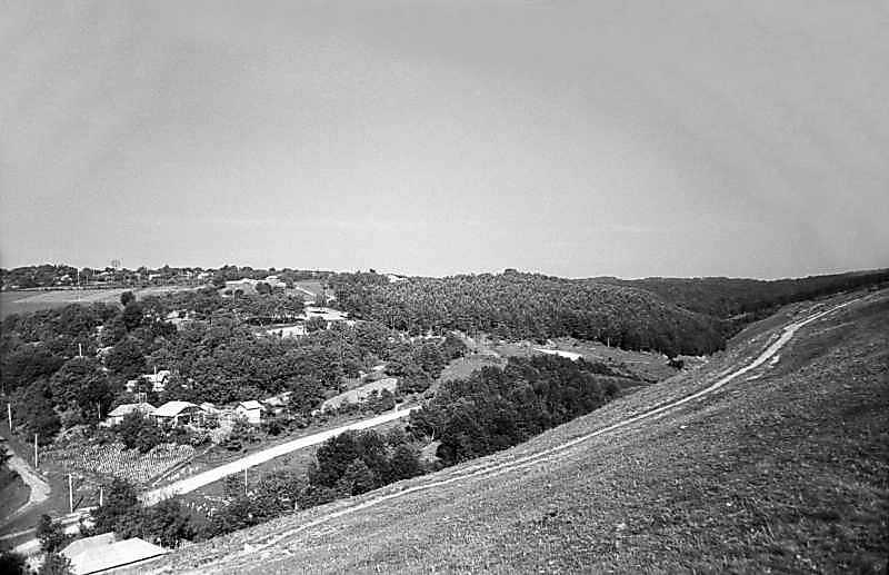 1978 р. Вид правобережної частини села від замкуРозмір зображення: 800:517 піксел 1978 р. 5 червня. Фото М.І.Жарких. Негатека, № 064-26. |