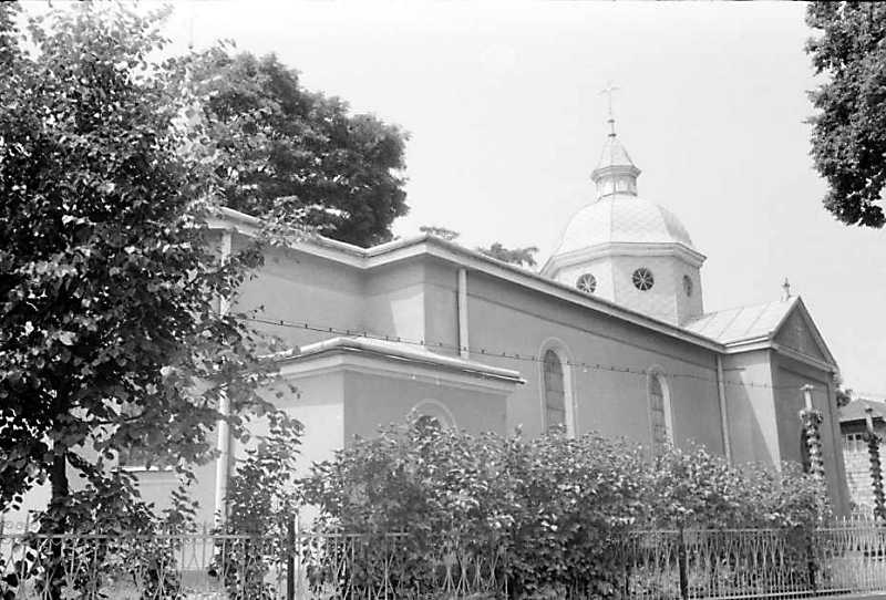 Церква на правому березі Збруча: орієнтація вівтаря 130°, в центрі села на головній вулиці (А1), дзвіниця в позиції А4. Спостереження М.І.Жарких 20.07.1991 р.
