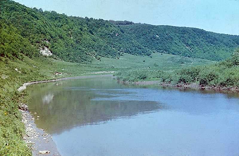1978 р. Збруч проти с.Милівці. Вигляд зі сходуРозмір зображення: 800:523 піксел 1978 р. 5 червня. Фото М.І.Жарких. Слайдотека. |