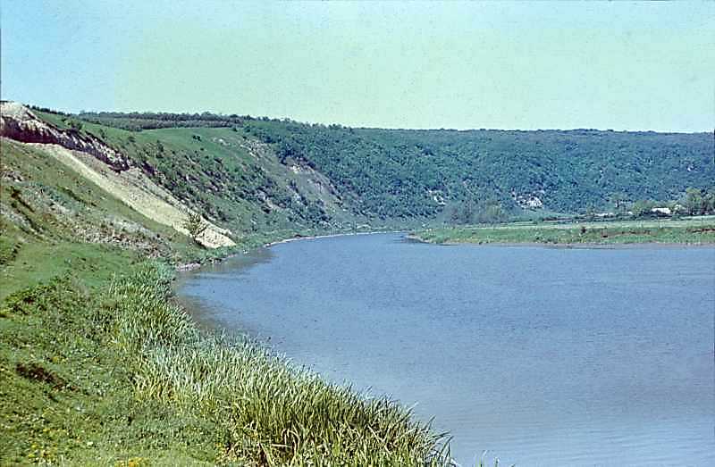 1978 р. Збруч проти с.Милівці. Вигляд зі сходуРозмір зображення: 800:523 піксел 1978 р. 5 червня. Фото М.І.Жарких. Слайдотека. |