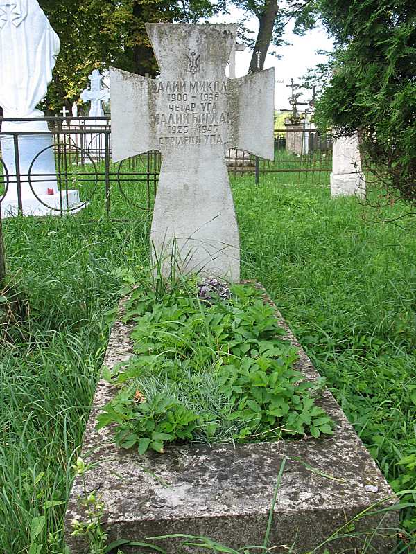 Надгробок родини МалихРозмір зображення: 600:800 піксел Фото Зенона Боровця і Богдана Тхора, 10 серпня 2011 р. Напис: «Малий Микола (1900 – 1936), четар УГА; Малий Богдан (1925 – 1945), стрілець УПА». |