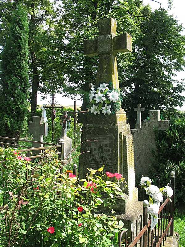 Могила Й. ХотинецькогоРозмір зображення: 600:800 піксел Фото Зенона Боровця і Богдана Тхора, 10 серпня 2011 р. Напис: «Тут спочиває дорогий муж і батько о. Йосиф Хотинецький, парох с. Кути з 1949 по 1970 р. 5.02.1898 – † 13.07.1970. вічна пам’ять». |