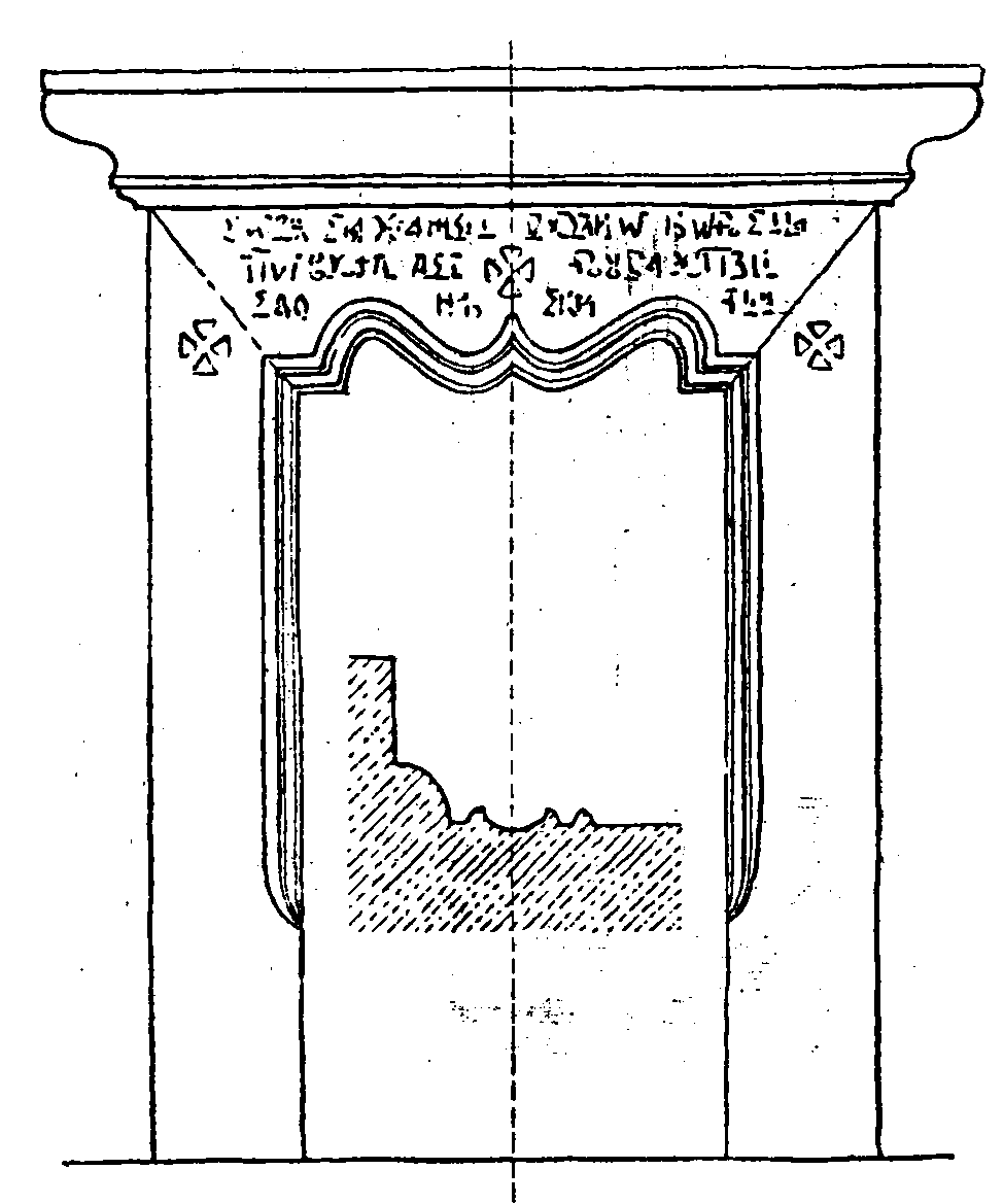 Двері ц-ви в Кутах біля Золочева. (рис. А. Лушпинського)Розмір зображення: 975:1169 піксел Джерело: Січинський В. Деревяні дзвіниці і церкви Галицької України XVI – XIX ст. – Льв.: 1925 р., № 81. |