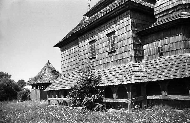 1988 р. Дзвіниця і південний фасад церкви. Вигляд з південного сходуРозмір зображення: 800:517 піксел 1988 р. 15 серпня. Фото М.І.Жарких. Негатека, № 456-04. |