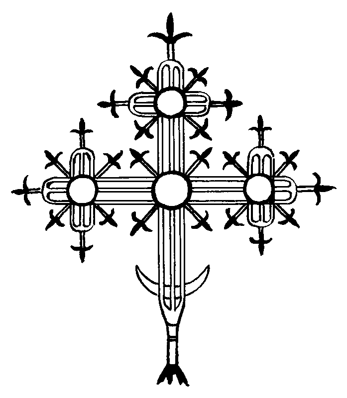 Хрест із села КвятоньРозмір зображення: 697:800 піксел Джерело: Іванусів О. Церква в руїні. – St. Catharines, 1987, с. 51. |