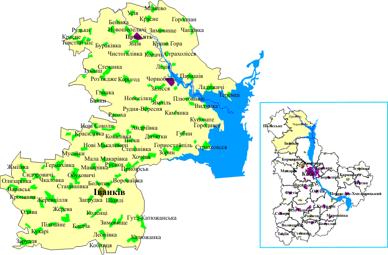 Після вибуху реактора на Чорнобильський АЕС жителі району були відселені, сам район зліквідований, його територія приєднана до Іванківського арйону. В нашій базі даних збережено стан району до катастрофи.